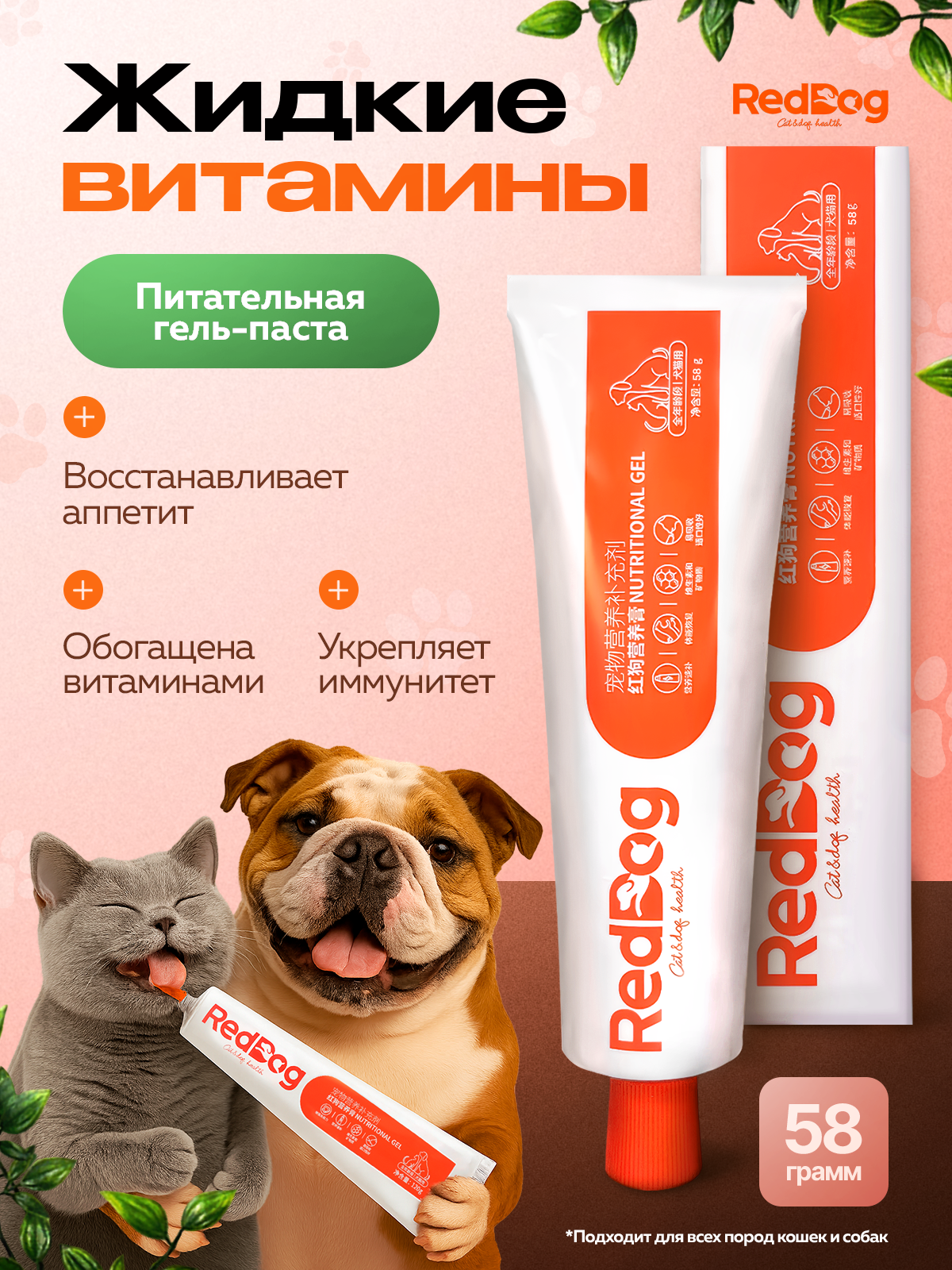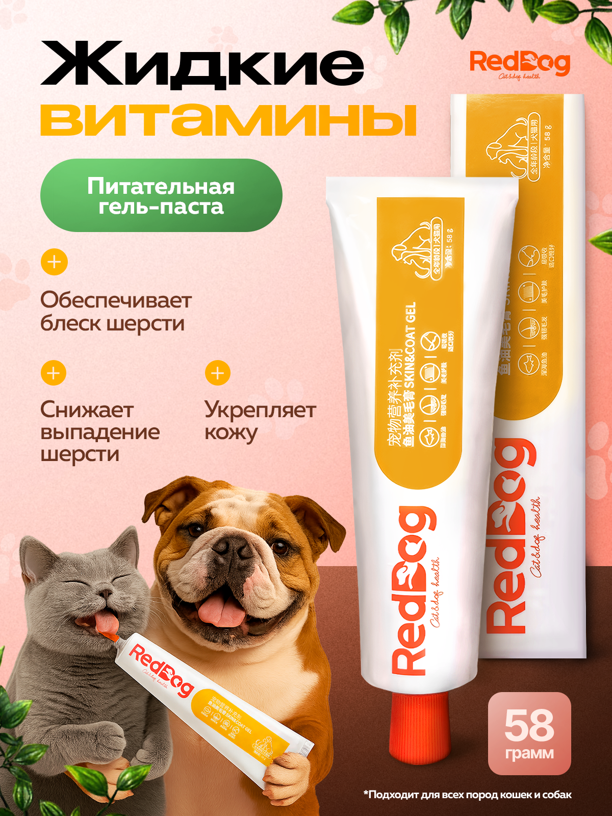 RedDog — это линейка премиум-продуктов для собак и кошек, созданная ветеринарными экспертами. В ассортимент входят гель-пасты, витамины, рыбий жир и добавки, поддерживающие здоровье шерсти, пищеварения, иммунитета и общего состояния питомца.