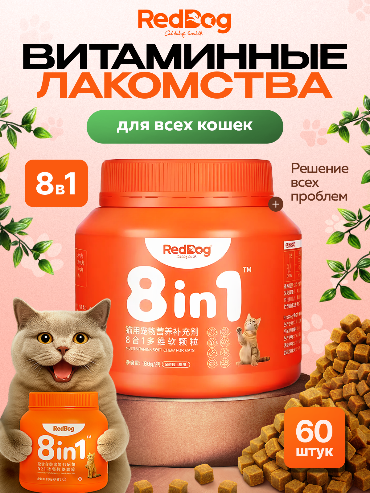RedDog 8 in 1 для кошек — это мягкие жевательные витамины премиум-класса, разработанные специально для пушистых приверед. Они не только полезны, но и нравятся даже самым капризным питомцам!