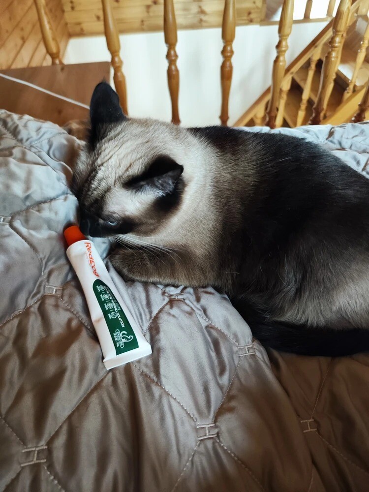 Моя лапка довольна гелем, уже почти все скушала 🥰